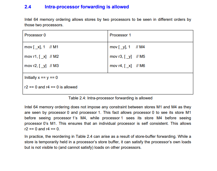 그리고 다음 줄에서 이어서 설명하는 부분이 스토어 버퍼에 저장이 되어있는 동안에 로드를 할 경우 프로세서의 load의 안정성에 대해서 보장하지 못한다고 말이죠